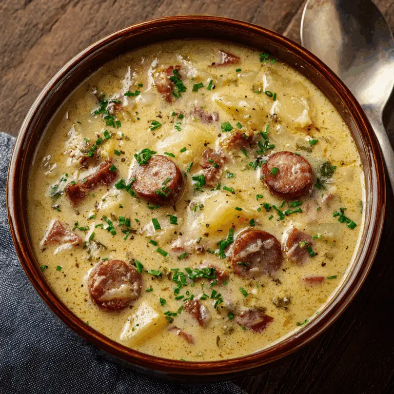 This Creamy Sausage & Cabbage Soup is a hearty, comforting dish that combines smoky sausage, fresh vegetables, and tender cabbage in a rich, creamy broth. It’s quick to prepare, full of flavor, and perfect for …