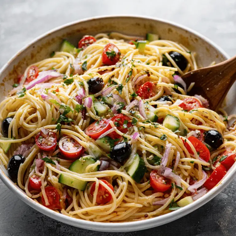 A fresh, colorful, and zesty pasta salad perfect for picnics, potlucks, or family dinners. This California Spaghetti Salad is loaded with crisp vegetables, black olives, and a flavorful Italian dressing that ties it all together. …