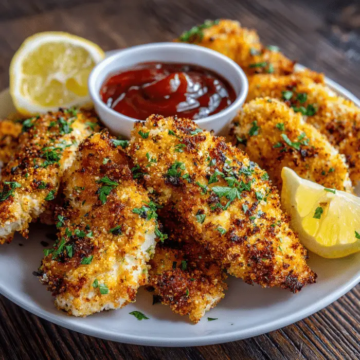 - Parmesan Crusted – Add ½ cup grated parmesan to breading