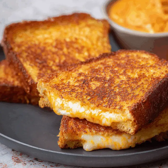 Serve immediately for the best flavor and texture. Pair your air fryer grilled cheese with a hot bowl of tomato soup, creamy broccoli soup, or a crisp garden salad. For an extra treat, sprinkle a little garlic powder or Parmesan on top before serving.