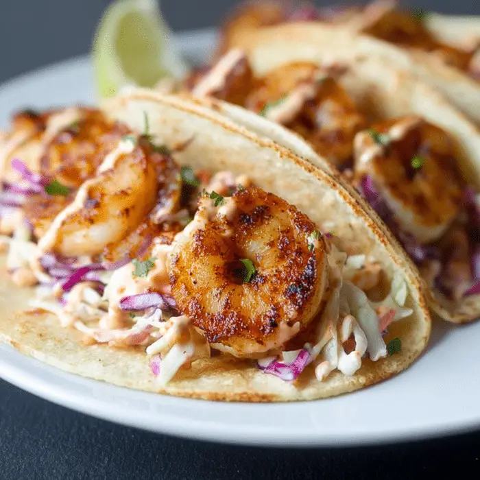 Baja Shrimp Tacos are a fun twist on taco night! Juicy shrimp are lightly spiced with ancho chili and cayenne, then paired with a creamy chipotle lime sauce and fresh Mexican coleslaw. Ready in just 20 minutes, this is a quick, flavorful dinner the whole family will love. Perfect for weeknights or casual gatherings!