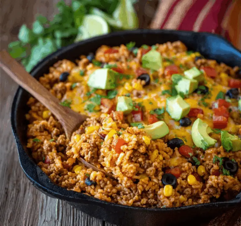 Looking for a delicious one-pan meal that’s bursting with flavor and perfect for those busy weeknights? Look no further than this mouthwatering Mexican Rice Skillet recipe! Loaded with lean ground beef, colorful veggies, and zesty …