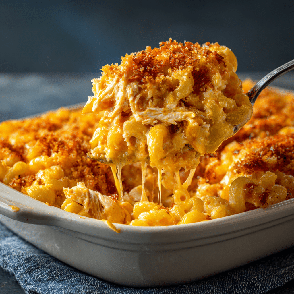 - Can I use pre-cooked or rotisserie chicken? Yes, pre-cooked or rotisserie chicken works well in this recipe. Simply shred the cooked chicken and mix it into the cheese sauce before baking.