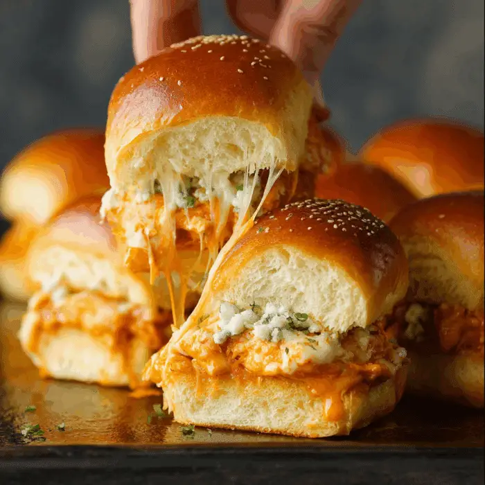 - Bacon Buffalo Sliders: Add cooked, crumbled bacon over the cheese layer for smoky crunch.