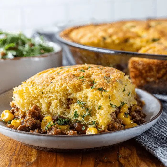 - Slow Cooker Version – Cook meat mixture in a slow cooker for 3–4 hours before adding cornbread and baking.