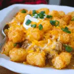 Cowboy Tater Tot Casserole is a hearty, cheesy, and comforting dish that’s perfect for busy weeknights, family dinners, or potlucks. Its creamy ground beef filling, combined with sweet cream corn and a crispy tater tot topping, makes it a meal everyone will love. Easy to prepare and fully customizable with vegetables, spices, or different cheeses, this casserole is as versatile as it is delicious. With simple ingredients and minimal prep, you can have a warm, satisfying dinner on the table in under an hour. Serve it fresh from the oven, enjoy leftovers the next day, or prepare it ahead for a stress-free meal—Cowboy Tater Tot Casserole is sure to become a family favorite.