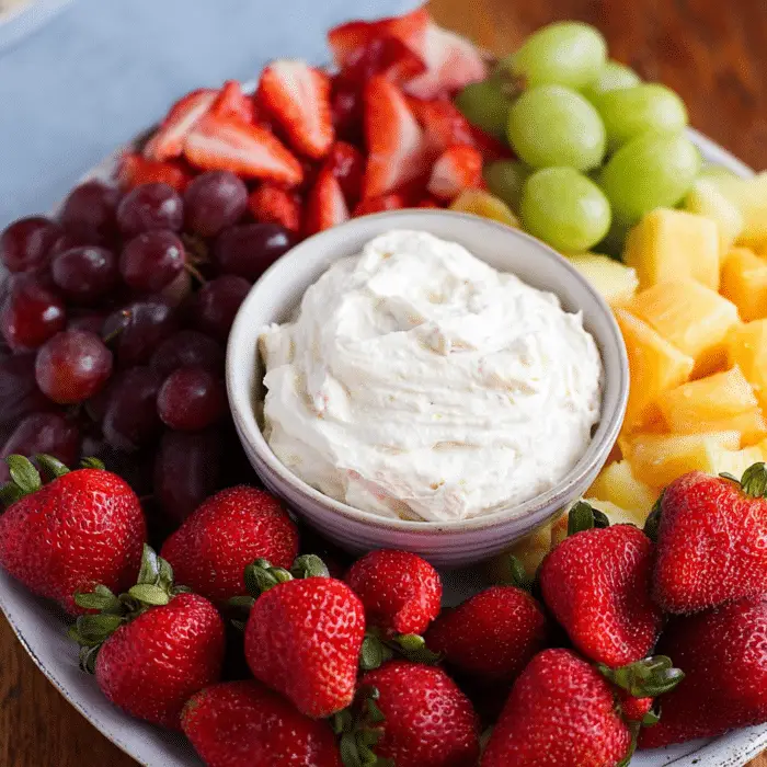 - Serving: Serve chilled with strawberries, apple slices, pineapple chunks, or pretzel sticks.