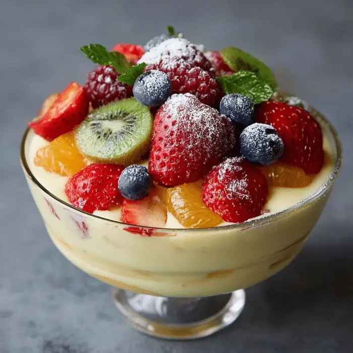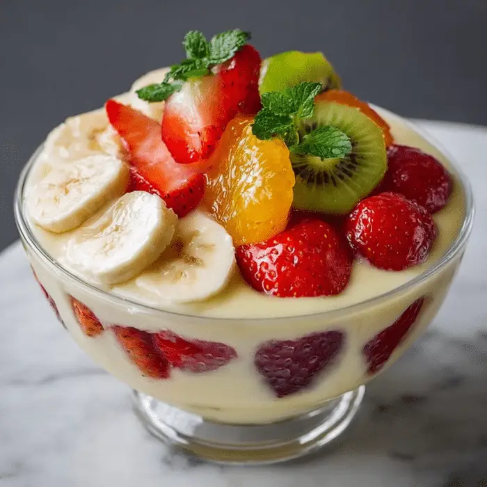 Creamy Fruit Custard Bowl is a quick, easy, and versatile dessert that brings together the richness of custard and the freshness of fruits. It can be customized in many ways, making it perfect for any occasion. Whether served plain or with creative variations, it always delivers a refreshing and satisfying experience.