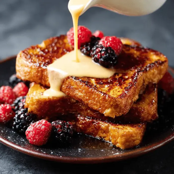 Crème Brûlée French Toast, also known as Marry Me French Toast, is an indulgent breakfast or brunch treat. Fluffy slices of brioche bread are soaked in a rich custard, cooked to golden perfection, and topped with caramelized sugar for that classic crème brûlée finish. Paired with warm, velvety creme anglaise sauce, this recipe is perfect for special occasions, weekend breakfasts, or any time you want a luxurious morning treat.
