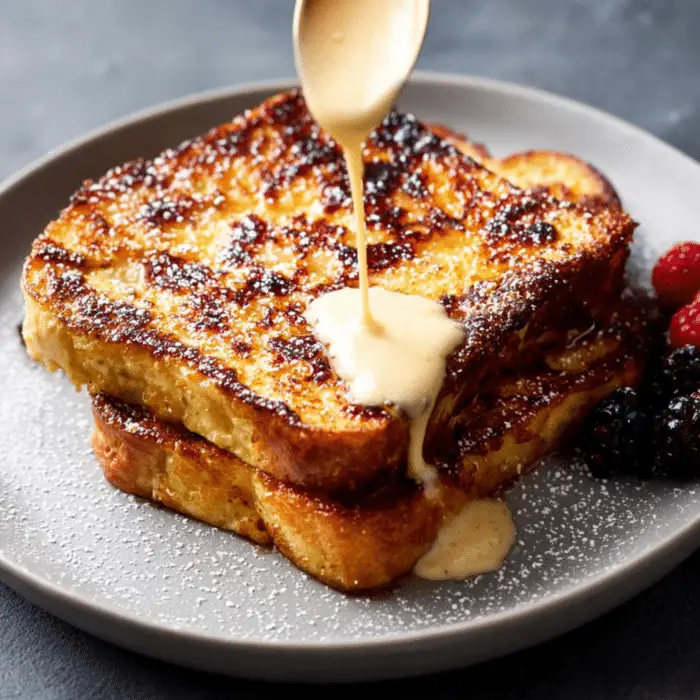 Crème Brûlée French Toast is a show-stopping breakfast that combines the richness of custard-soaked brioche with the sweet crunch of caramelized sugar. The creamy creme anglaise adds elegance and depth to each bite. Perfect for brunch gatherings, romantic breakfasts, or indulgent weekend mornings, this recipe is sure to impress and delight anyone lucky enough to enjoy it.