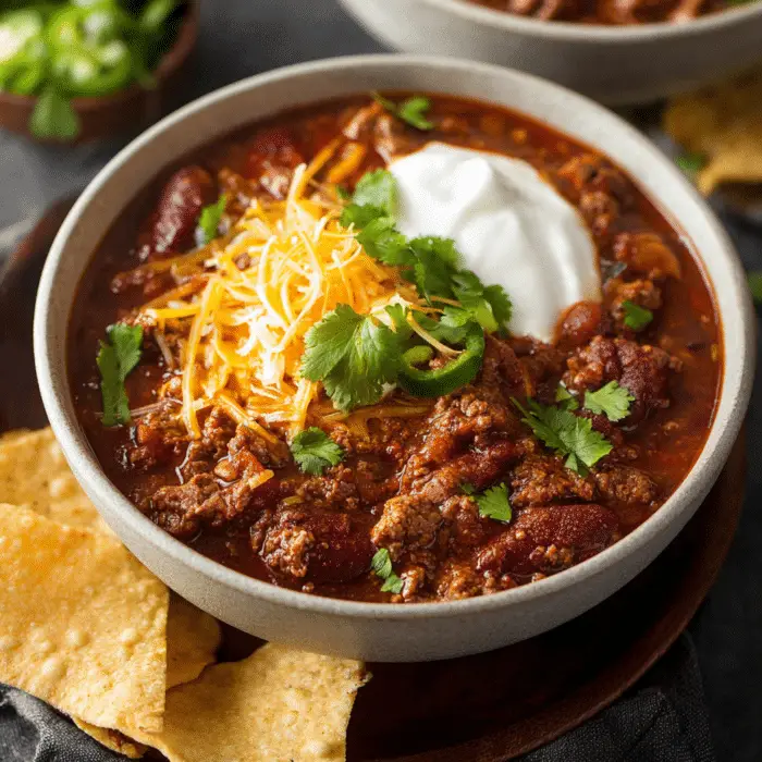 This Crockpot Chili Recipe is a simple, flavorful, and hearty meal that’s perfect for any occasion. With tender ground beef, savory beans, rich tomatoes, and a blend of spices, it delivers classic chili taste with minimal effort. Its versatility allows for endless variations, from spicy to vegetarian, making it a family favorite year-round. Easy to prep, slow-cooked to perfection, and perfect for serving a crowd, this chili is a go-to comfort food that warms both the body and the soul.