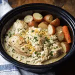 Crockpot Creamy Ranch Chicken is the perfect combination of comfort and convenience. With tender, juicy chicken, hearty potatoes, and sweet baby carrots all smothered in a rich, creamy ranch sauce, it’s a meal the whole family will love. Minimal prep and the slow cooker do all the work, making it ideal for busy weekdays or cozy weekends.