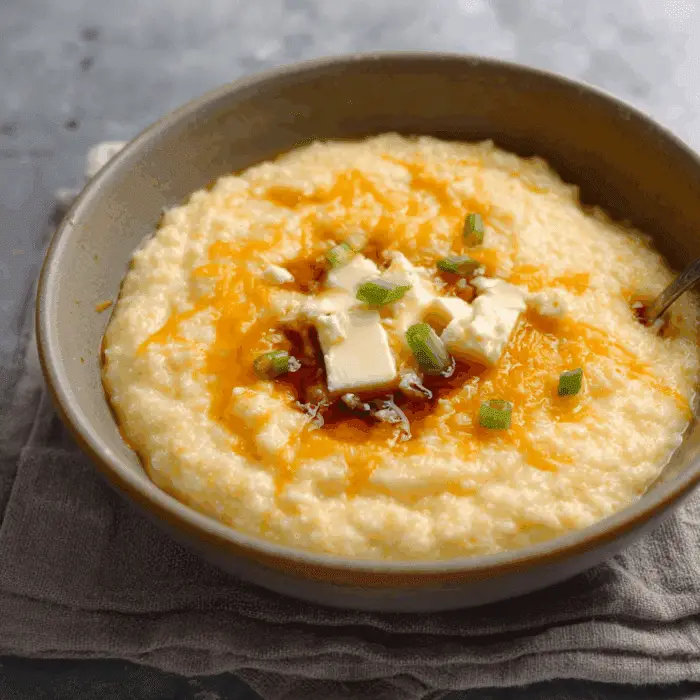 - Loaded Breakfast Grits – Top with fried eggs, sausage crumbles, and chives for a complete breakfast bowl.