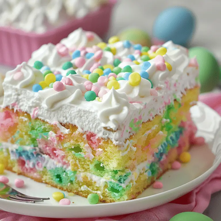 This Easter Poke Cake is a delightful and colorful treat that’s perfect for spring celebrations. Featuring vibrant swirls of pastel colors, creamy white chocolate pudding, and fluffy whipped cream, this cake is as fun to …