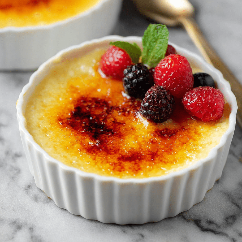 - Presentation Perfection: Serve your Crème Brûlée in the individual ramekins for an elegant presentation. Garnish with a fresh berry or mint leaf for a pop of color and added freshness.