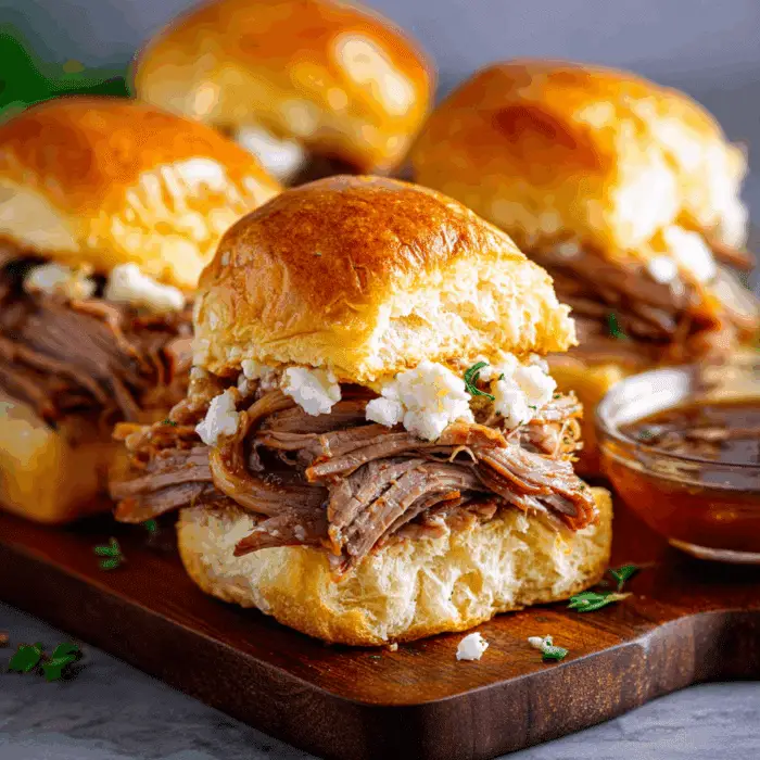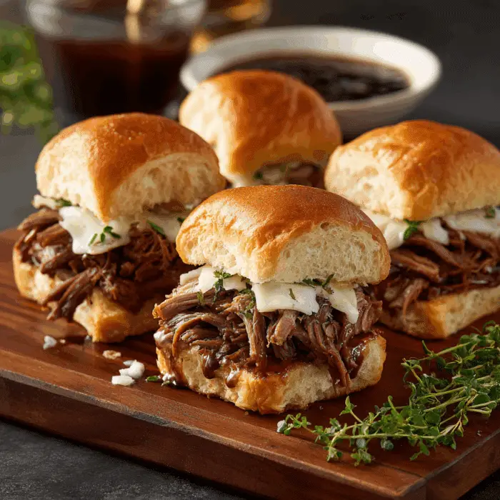 - Cheddar French Dip Sliders: Use sharp cheddar instead of provolone for a bolder, tangy flavor that complements the beef beautifully.