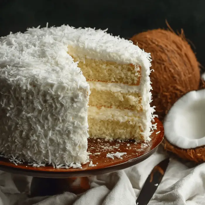 Fresh Coconut Cake is a moist and flavorful dessert that celebrates the natural sweetness of fresh coconut. Layers of tender white cake are filled with a creamy coconut filling and covered in a light coconut buttercream. Chilling enhances the flavors, making it the perfect dessert for special occasions or family gatherings. Using fresh or frozen coconut adds a rich texture that makes this cake stand out from standard coconut cakes.