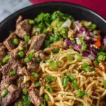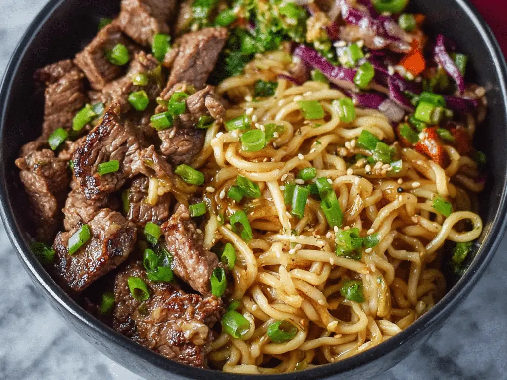 Garlic Beef Noodle Bowls are a quick and flavorful Asian-inspired dish made with tender strips of beef, chewy noodles, and a rich garlic soy sauce. This recipe is perfect for busy weeknights because it comes together in about 15 minutes while still delivering deep, savory flavor. The combination of garlic, ginger, and soy sauce creates a bold and comforting meal that tastes like takeout but is homemade and fresher.