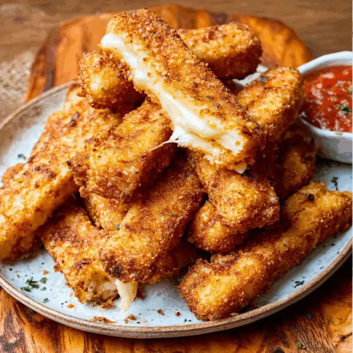 - Air Fryer Cheese Sticks: For a lighter version, cook in the air fryer at 390°F for 6–7 minutes until golden brown and crispy.