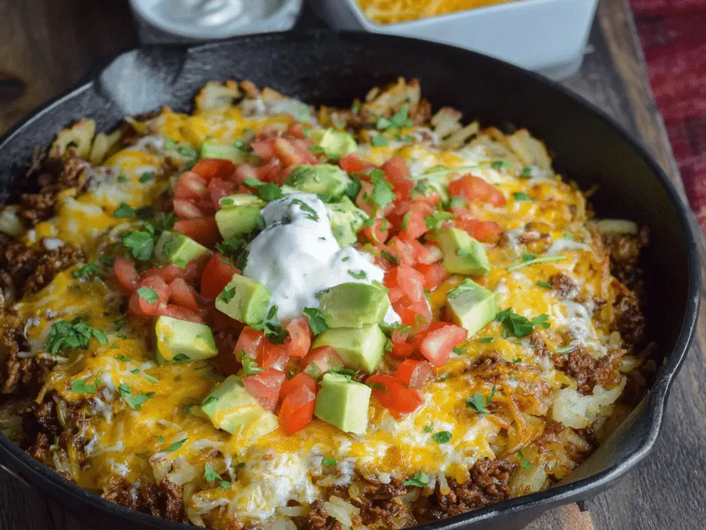 Hashbrown Enchilada Skillet is the ultimate comfort food mashup that brings together crispy hashbrowns, savory seasoned ground beef, and rich enchilada sauce in one easy, one-pan meal. This recipe is perfect for busy weeknights when you want something hearty, satisfying, and quick to prepare. With minimal prep and simple ingredients, it delivers bold Tex-Mex flavors that the whole family will love. Plus, it’s highly customizable, making it easy to adapt based on what you have on hand.