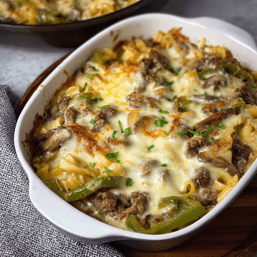 - Make it a Sandwich: Serve a portion of the casserole in a toasted hoagie roll for a creative twist on the traditional Philly cheese steak sandwich.