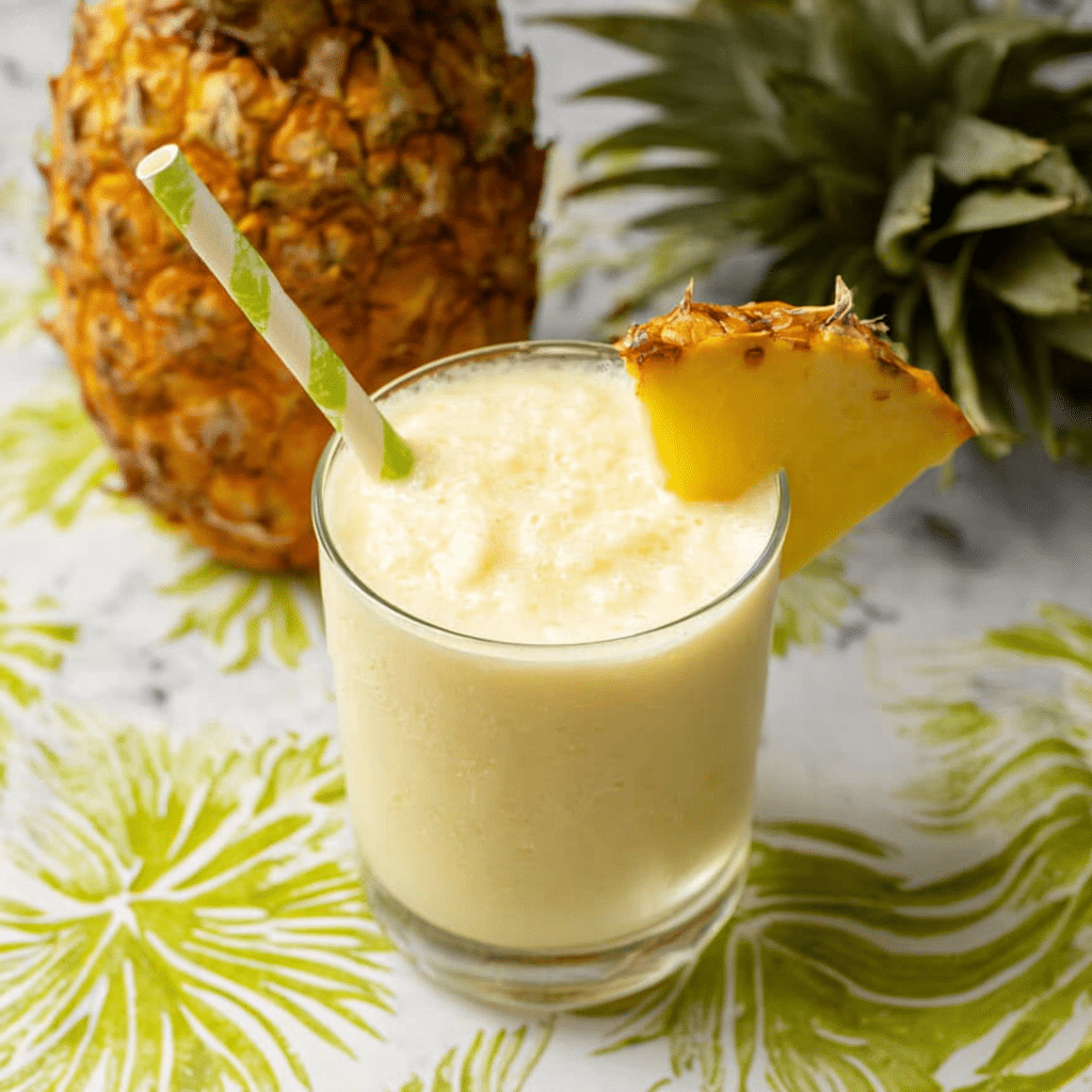 Serve the Pina Colada Smoothie immediately to experience the vibrant taste of the tropics in every sip.