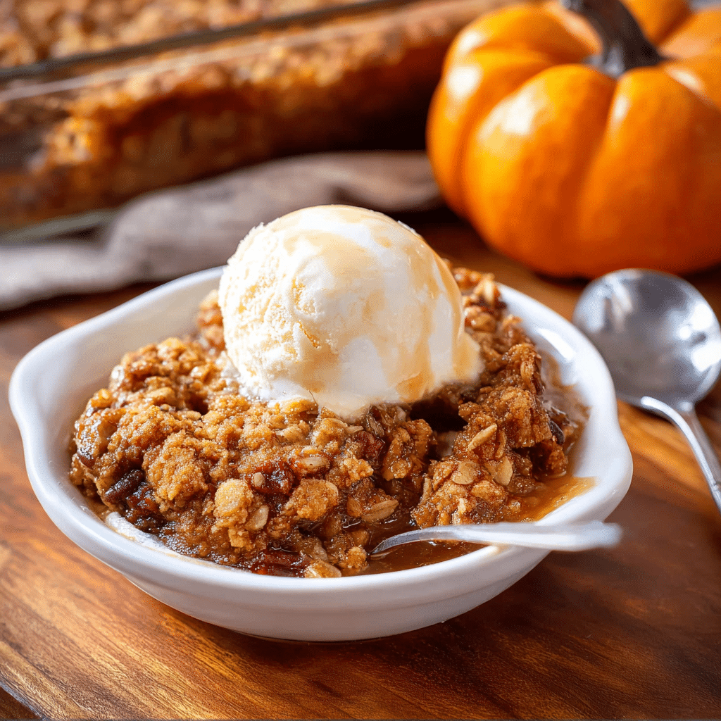 This Pumpkin Crisp is a delightful autumn dessert that’s perfect for serving warm. For a touch of indulgence, top each serving with a scoop of homemade vanilla ice cream or a dollop of whipped cream. It’s also delicious on its own or paired with a hot beverage like spiced cider or coffee. For a festive presentation, garnish with a sprinkle of cinnamon or a few chopped pecans. - Storage Tips