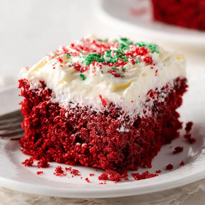 Red Velvet Christmas Poke Cake is a festive and easy holiday dessert that combines a soft red velvet cake with a rich white chocolate filling and creamy cream cheese frosting. The vibrant red color and snowy white topping make it perfect for Christmas celebrations, potlucks, and family gatherings. Every bite is moist, indulgent, and full of holiday flavor.