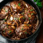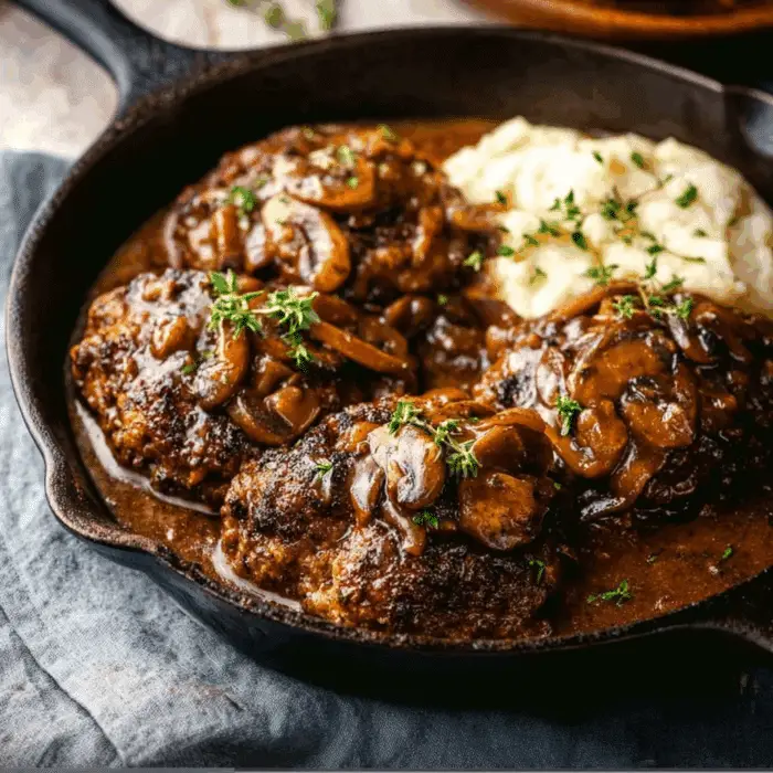 Skillet Salisbury Steak is a comforting, classic American dinner that combines juicy beef patties with a rich, flavorful mushroom and onion gravy. Ready in just 30 minutes, this dish is perfect for busy weeknights yet delicious enough for Sunday supper. When served with creamy mashed potatoes and green peas, it delivers that nostalgic homemade taste everyone loves.