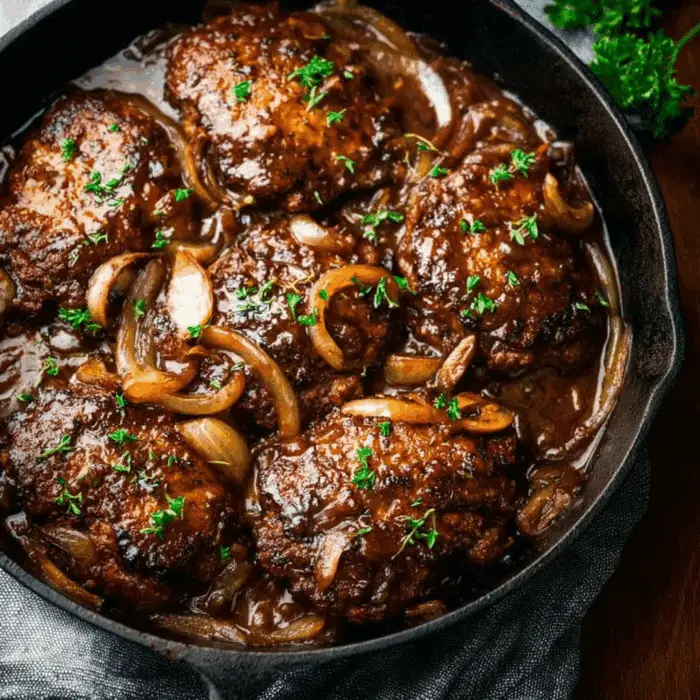 This Skillet Salisbury Steak recipe is a timeless comfort food that delivers rich flavor and heartwarming satisfaction in every bite. The tender beef patties combined with the savory mushroom-onion gravy make it the perfect meal for family dinners. Quick, simple, and irresistibly delicious—this dish will easily become a weeknight favorite on your menu.