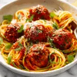 Spaghetti and Meatballs is one of the most beloved comfort food dishes, perfect for family dinners, gatherings, or a cozy weeknight meal. Juicy, seasoned meatballs made with a blend of beef and pork are simmered in a rich, homemade tomato sauce and served over perfectly cooked spaghetti. This timeless recipe combines hearty flavors, simple ingredients, and an authentic Italian-inspired touch that makes it a favorite around the table