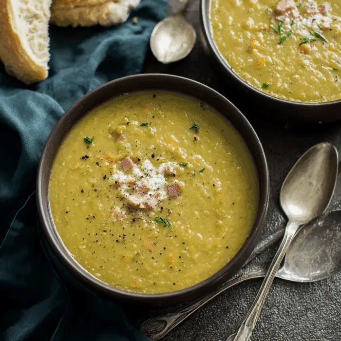 - Creamy Split Pea Soup – Blend half or all of the soup with an immersion blender and stir in a splash of cream for a silky texture.