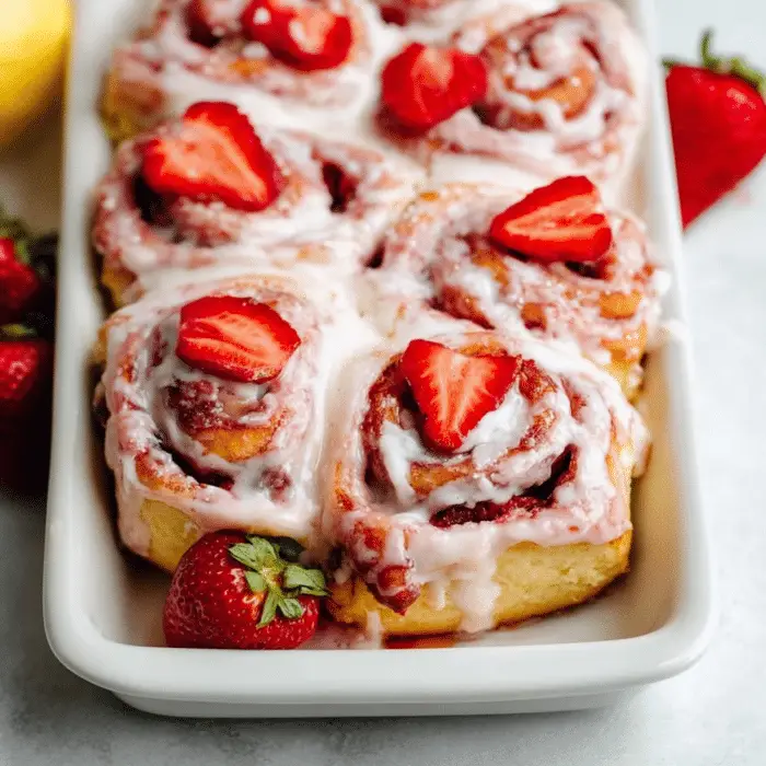 Strawberry cinnamon rolls with lemon cream cheese glaze are a fruity, tangy, and delightfully sweet take on a beloved classic. With their soft, fluffy dough and vibrant filling, they’re perfect for breakfast, brunch, or even dessert. Whether you’re baking for a special occasion or just because, these rolls will impress every time with their flavor and freshness.