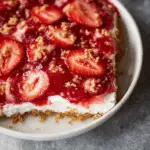 - Add Strawberry Layer: Once the Jello is partially set, carefully pour or spoon it over the cream cheese layer.