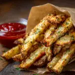 These oven-baked garlic-parmesan fries are crispy on the outside, tender on the inside, and packed with flavor. Unlike traditional fries that rely heavily on oil, these are lightly coated, allowing the natural potato flavor to shine through. Perfect as a snack, side dish, or party appetizer, they are simple to make and fully customizable with your favorite seasonings.
