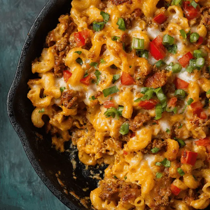 After combining the cooked macaroni and cheese with the taco meat mixture, transfer everything into a baking dish. Top with shredded cheddar or Mexican blend cheese and bake at 350°F (175°C) for 10–15 minutes or until the cheese is bubbly and golden. This adds a crispy, cheesy crust for extra texture. - Loaded Taco Mac and Cheese