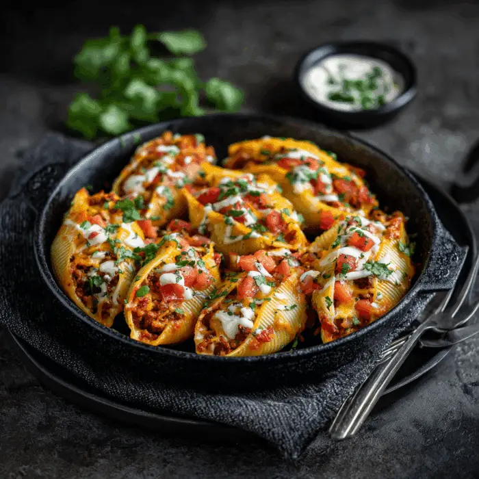 If you’re craving a meal that’s both hearty and full of flavor, these Taco Stuffed Shells are a must-try. This recipe combines the best of two worlds — the bold, spicy flavors of tacos and the comforting, cheesy goodness of pasta shells. Perfect for weeknight dinners, family gatherings, or potlucks, this dish will have everyone asking for seconds. Each jumbo shell is filled with seasoned ground beef, onions, salsa, and a melty blend of cheddar and Monterey Jack cheese, then baked to golden perfection. It’s a satisfying, family-friendly meal that’s easy to prepare and irresistibly delicious.