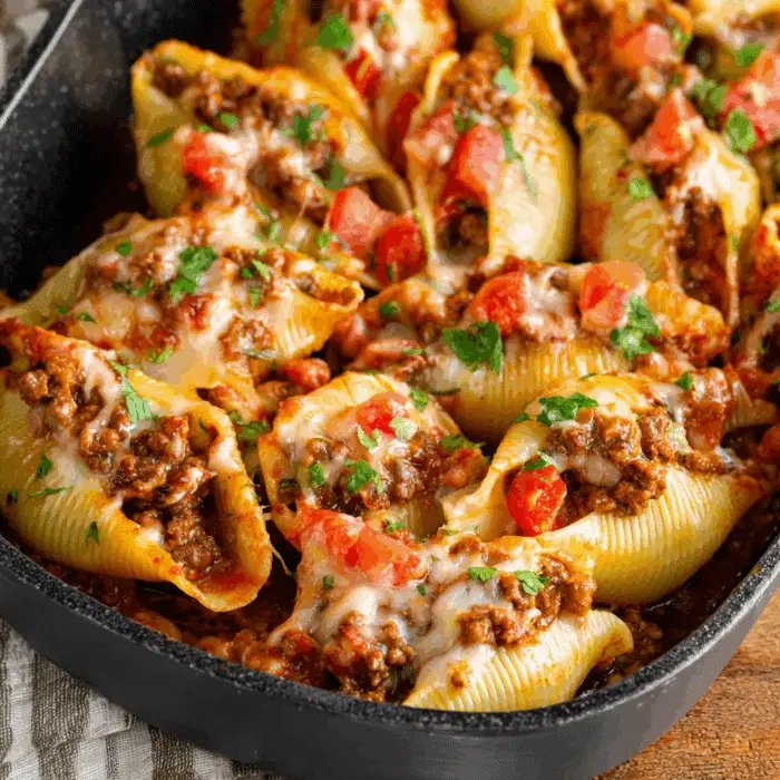 - Cheesy Enchilada Shells – Mix enchilada sauce with the beef mixture and top with extra cheese before baking.