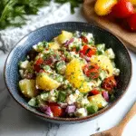Tender potatoes are tossed with crisp cucumbers, juicy tomatoes, briny olives, fresh parsley, and creamy feta cheese. The result is a colorful, healthy, and incredibly flavorful salad that works perfectly as a side dish, appetizer, or light meal.